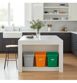 Características: Con tapa. Fabricado en material ligero y resistente. Superficie lisa y fácil de limpiar. Ideal para reciclar de basura orgánica e inorgánica. Ideal para restaurantes, cocinas industriales, etc. Fabricado con plástico resistente.