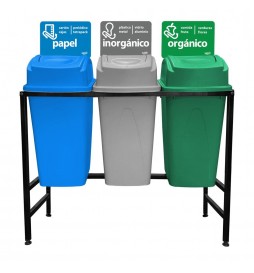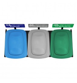 Características: Ideal para reciclar y separar basura orgánica, inorgánica y papel. Diseño práctico y resistente. Con tapa balancín. Fabricado en material ligero. Capacidad 65 litros.